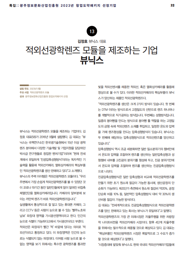 [광주정보문화산업진흥원 창업도약패키지 선정기업] 적외선광학렌즈 모듈을 제조하는 기업 ‘뷰닉스’