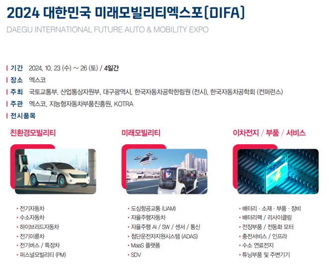 2024 대한민국 미래모빌리티엑스포 (DIFA) 참가 (2024/10/23/ ~ 10/26)